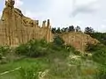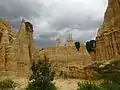 There are multiple examples of tulins in Yuanmou County in the Yunnan Province of China, in an area of about 50 square kilometers. The tallest formation has a height of 40 meters (130 ft). The features are one to two million years old.[1] The area was opened for tourism as the Yuanmou Earth Forest (Tulin in Chinese) in 1985.[2]