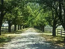 A key landscape element is the driveway, which is lined with an avenue of 51 Elms down each side. They are mature from the gates through to the 28th tree, and semi-mature after that indicating two stages of planting. The size of the more mature specimens suggests an original planting date of around 1900. About 10 of the trees are recent in-fill sapling plantings. Other related landscape elements are a number of cypresses (Cupressus Macrocarpa) which appear to have been planted in the early twentieth century as a wind-break, and there are more mature Cypress windbreaks in the surrounding paddocks. These vary in maturity and appear to date from the early to mid-twentieth century.