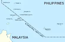 The islands are located within the Sulu Sea[7] at the south-western tip of the country, at the edge of the international treaty limits separating the Philippines and Malaysia.[8] The seven islands from largest to smallest are:[9][10]