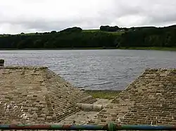 Turton and Entwistle Reservoir is a water reservoir in the village of Edgworth, Lancashire, England. The reservoir's existence is due to the Entwistle Dam. When constructed in 1832 the Entwistle Dam was the highest in Britain; it rises 108 feet from the base.[1] The reservoir contains almost 750 thousand imperial gallons (roughly 3,400,000 litres) and, with the Wayoh Reservoir just below, satisfies around 50% of Bolton's need for drinking water.[1]