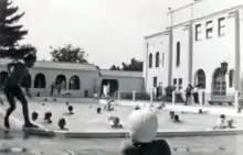 Founded in 1921 as Tustin Union High School because it served five elementary districts (Tustin, Laguna Beach, El Toro, Trabuco Canyon and San Joaquin),[4] Tustin High School was a stately two-story structure surrounded by miles of orange groves and other agri-businesses, thus the school's nickname was the "Tustin Tillers". Tustin High School is the oldest school in the district, with the second oldest (Foothill High School) built in 1963. The original layout of the school included a neoclassic building with a 1,000-seat auditorium, outdoor Greek theater, domestic science department, mechanical and manual training departments, athletic field and gymnasium (opened in 1924). In 1927, a new wing was added, and then a large gymnasium and swimming pool.