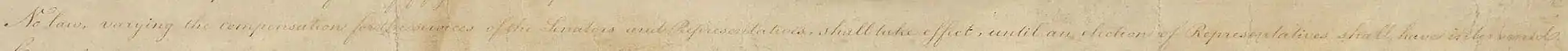 No law, varying the compensation for the services of the Senators and Representatives, shall take effect, until an election of Representatives shall have intervened.[5]