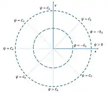 Fig 4 – Streamlines and potential lines for an irrotational vortex