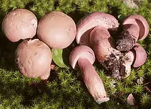 Tylopilus plumbeoviolaceus (formerly Boletus plumbeoviolaceus), commonly known as the violet-grey bolete, is a fungus of the bolete family. First described in 1936, the mushroom has a disjunct distribution, and is distributed in eastern North America and Korea. The fruit bodies of the fungus are violet when young, but fade into a chocolate brown color when mature. They are solid and relatively large—cap diameter up to 15 cm (5.9 in), with a white pore surface that later turns pink, and a white mycelium at the base of the stem. Like most boletes of genus Tylopilus, the mushroom is inedible due to its bitter taste. A number of natural products have been identified from the fruit bodies, including unique chemical derivatives of ergosterol, a fungal sterol.