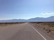 From the pass, US 6 descends into barren shadscale desert, passing Columbus Salt Marsh on the left, then merging with US 95 from Coaldale Junction to Tonopah. Nevada Test and Training Range begins about 15 mi (24 km) southeast of Tonopah.
