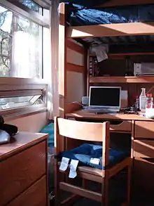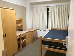 There are also Suites, which are standalone units supporting 4-6 students, with private bathroom and living space.[4] The complex comprises several buildings sharing a laundry room and outdoor recreational amenities. This configuration is found in Hitch Suites and Saxon Suites.