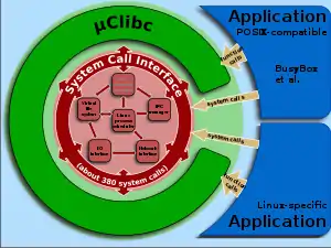 In computing, uClibc (sometimes written µClibc) is a small C standard library intended for Linux kernel-based operating systems for embedded systems and mobile devices. uClibc was written to support μClinux, a version of Linux not requiring a memory management unit and thus suited for microcontrollers (uCs; the "u" is a Latin script typographical approximation - not a proper romanization, which would be letter "m" - of μ for "micro").[3]