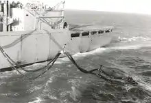 On 15 August 1991 four airmen from Helicopter Combat Support Squadron 11 (HC-11 "Gunbearers") were missing and presumed dead after their helicopter crashed while resupplying ships in the Pacific Ocean 100 miles (160 km) east Wake Island. Search efforts were abandoned about 24 hours later for the Sea Knight, which had been operating from Camden. Two ships were close by when the aircraft dropped into the water. Two helicopters were immediately launched for an air search, and the ships in the area launched whaleboats to assist in the search. Camden was deployed to resupply the aircraft carrier USS Nimitz and support ships, which were returning to the U.S. from duty in the Persian Gulf after taking part in Operation Desert Storm.[1]