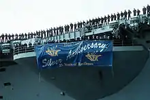 After nearly 40 years of service in the United States Navy, John F. Kennedy was officially decommissioned on 1 August 2007. She is berthed at the NAVSEA Inactive Ships On-site Maintenance facility in Philadelphia and, until late 2017, was available for donation as a museum and memorial to a qualified organization.[1][7] In late 2017, the Navy revoked her "donation hold" status and designated her for dismantling.[4] The name has been adopted by the future Gerald R. Ford-class aircraft carrier John F. Kennedy (CVN-79).