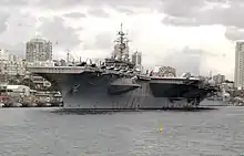 ![]() USS Kitty Hawk underway in the Pacific Ocean, May 2005 | |