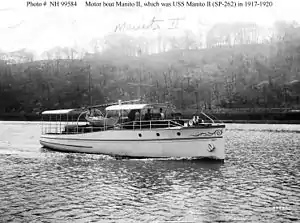 - Department of the Navy: Navy History and Heritage Command: Online Library of Selected Images: U.S. Navy Ships: USS Manito II (SP-262), 1917-1920. Previously civilian motor yacht Manito II (1912)