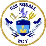 USS Squall (PC-7) is the seventh Cyclone class patrol (coastal) ship. Squall was laid down 17 February 1993 by Bollinger Shipyards, Lockport, Louisiana and launched 28 August 1993. She was commissioned by the United States Navy 4 July 1994.
