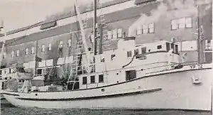 She was built in Tacoma, Washington by J.M. Martinac for the benefit of W.D. Suryan of Juneau, Territory of Alaska.[1] She was wood-hulled.[1] In 1940, she was completed, configured as a purse seiner, and christened Cavalcade.[1][2] On 6 November 1940, she was acquired by the United States Navy and commissioned at Puget Sound Navy Yard on 28 November 1940.[1] She was designated as a Yard patrol boat (YP).[1] Her initial armament consisted of a single 3"/23 caliber gun.[1] She was assigned along with two other converted fishing vessels (YP-73 and YP-74) to the newly created Alaska Sector of the 13th Naval District under Captain R. C. Parker who was tasked with building up the nearly absent Naval defenses of Alaska and the Aleutian Islands.[3] On 31 March 1941, she left Bremerton for her new station at Dutch Harbor[1] where she and her fellow YPs joined the former Coast Guard cutter Onondaga and the gunboat Charleston to form what was colloquially called the "Alaskan Navy."[3] She served as the flagship of the YP fleet under Commandeer Charles E. ("Squeaky") Anderson, USNR, a "local character of infinite resource, energy, and cunning."[3] Her armaments were upgraded in December 1941, adding two .50 caliber machine guns and two .30 caliber Lewis machine guns; and again in late 1942 with two 20mm anti-aircraft guns and depth charge capability.[1] On 17 February 1943, she was grounded on an uncharted reef in Kuluk Bay, Adak Island[1] at 51°52′N 176°39′W[4] (another report erroneously indicates that she was grounded at the Spruce Cape entrance to Kodiak, Kodiak Island although this is the fate of YP-73).[5][6] She was deemed a total loss on 23 February 1943 and struck from the Naval List on 30 March 1943.[1]