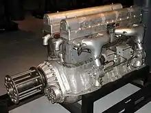 The General Motors 6046 is a twin-engine setup that was used by Sherman tanks during World War II. The 6046 was built using two straight-six engines that were separately clutched to a single output shaft, which was itself clutched to the transmission unit. A total of 10,968 6046D-powered M4A2 Shermans were produced.[9] After World War II, several Soviet Union tanks powered by 16-cylinder and 18-cylinder engines that were reverse-engineered from the General Motors 6046 engine. These Soviet engines were designated Russkiy Dizel (Diesel Energo) DPN23/2H30 and the DRPN23/2H30.[10][11]