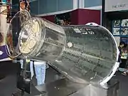 The spacesuit worn by Gus Grissom during his Mercury flight is on display and has been the subject of a dispute between NASA and Grissom's heirs and supporters since 2002. The spacesuit, along with other Grissom artifacts, were loaned to the original owners of the Hall of Fame by the Grissom family when it opened. After the Hall of Fame went into bankruptcy and was taken over by a NASA contractor in 2002, the family requested that all their items be returned.[18] All of the items were returned to Grissom's family except the spacesuit, because both NASA and the Grissoms claim ownership of it.[19] NASA claims Grissom checked out the spacesuit for a show and tell at his son's school, and then never returned it, while the Grissoms claim Gus rescued the spacesuit from a scrap heap.[20]