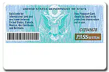 ![]() The rear of a United States passport card (2008) | |