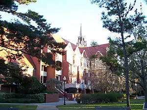 The University Auditorium, originally known as the Memorial Auditorium and sometimes called the University of Florida Auditorium, is a historic building on the campus of the University of Florida in Gainesville, Florida, in the United States. It was designed by William Augustus Edwards in the Collegiate Gothic style and was built between 1922-1924.[1] It was restored and expanded in 1977 by architect James McGinley. The expansion, which added a new entrance and lobbies, was designed to complement but not match the original architecture.[2] It is a contributing property in the University of Florida Campus Historic District which was added to the National Register of Historic Places on April 20, 1989. On April 18, 2012, the AIA's Florida Chapter placed University Auditorium on its list of Florida Architecture: 100 Years. 100 Places.[3]