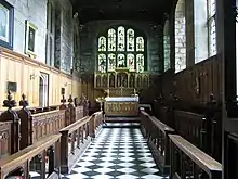The castle's northern wing originally contained a dining hall, but this was later divided up to make more luxurious quarters for the Prince Bishop.[27] This area is also home to the two chapels of the college. The Norman Chapel dates from the 11th century and is the oldest accessible part of the castle, and retains its original Saxon architectural style. The Tunstal Chapel is the larger of the two; it dates from the 15th century and is named after Cuthbert Tunstal. It houses the college organ. Both chapels are used for worship within the college.[28]