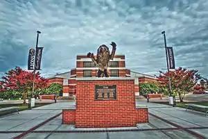 In front of the Stubblefield Center, home of the Lions basketball and volleyball teams, is the newly erected Numa statue. The statue is a 15-foot (4.6 m) long, bronze rendition of the University's mascot. The sculpture was unveiled on April 28, 2010, and is the largest statue of a leaping lion in the world.