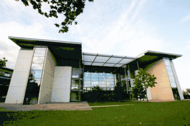 The £120-million de Havilland campus, which was built by Carillion, opened in September 2003 and is situated within 15 minutes walk of College Lane, and is built on a former British Aerospace site.[41] This campus also houses its own Learning Resource Centre, a combined library and computer centre.[13] Hertfordshire Sports Village which includes a gym, swimming pool, squash courts is also on this site. The large Weston Auditiorium is present on the de Havilland campus, adjacent to the Learn Resource Centre. The auditorium has a capacity of 450 and can host talks both by university lectures for students and for guest lecturers for guests and students, music and films events and dance events.[42] The campus also contains 11 halls of residence;[43] named after local towns and villages. Ashwell and Welwyn are examples of the buildings with the towns being present in Hertfordshire. The campus is mostly themed around law and business, having its business school located on the campus as well as its law school. A full scale, mocked up court room is present, being available for use for students studying a law degree. Along with publicly Northampton University it provides the 2 years accelerated law degree.