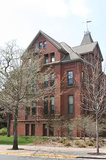 The first home of the Physics department.[2] The Beaux-Arts structure was rehabilitated in 2005 to provide updated mechanical systems and ADA access. Historic features such as stair treads and banisters, paneled doors, arched ceilings, and terra cotta facade were preserved during the project.[9] The building is now home to the Freshman Admissions Welcome Center as well as the College of Liberal Arts language lab.