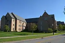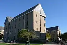 Baumer Hall is one of the 31 residence halls at the University of Notre Dame.[53] It located on West Quad, south of Keough Hall and west of Ryan Hall, on McGlynn fields. It is the newest men's residence hall, built in 2019, after a donation from John and Mollie Baumer.[54][55][56]