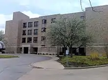 Groundbreaking took place on March 27 and construction started May 6 and the cornerstone was laid May 6, 1939. It was built as a male dormitory, and the money was donated by brothers in law benefactors attorney William P. Breen (class of 1877) and banker Frank B. Phillips (class of 1880).[72] It was built in 165 days, and it was ready to host 185 students on September 8. It was built in collegiate Gothic style by Boston-based architects Maginnis and Walsh, who worked on several other projects at Notre Dame. Breen was also director of the Board of Trustees and President of the alumni association.[73] Originally, it hosted the athletics department on its first floor, including the football coach Frank Leahy's office, and the football ticket office.[74] It hosted naval officers during World War II when the university was used by the Navy for training purposes.[72][75] It was converted in a female dorm in 1973.[76]