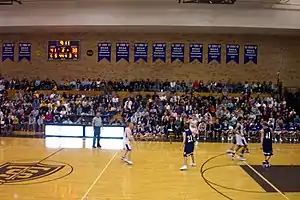 St. Thomas' longtime archrival is Saint John's University from Collegeville, Minnesota. Recent national titles include men's basketball in 2011 and 2016;[27] men's baseball in 2009 and 2001; women's softball in 2005 and 2004; men's lacrosse (MCLA Division II) in 2019, 2016, 2013, 2012, 2010 and 2009; women's volleyball in 2012; and dance team in 2017, 2016, 2015, 2014, 2013, 2012, 2011, 2010, 2008 and 2006. St. Thomas also won national championships with women's basketball in 1991; men's cross country in 1986 and 1984; men's indoor track in 1985; and women's cross country in 1987, 1986, 1984 and 1982. In 2012, St. Thomas played for the first time in the Stagg Bowl in Salem, Virginia, which is the Division III Football National Championship game, against the University of Mount Union, losing 28-10.[28] In 2015, St. Thomas reached the Stagg Bowl for the second time, prompting another championship match against Mount Union. St. Thomas ultimately ended up losing the game, with a final score of 49-35.[29]