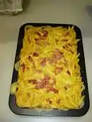 A figazza is a pizza bread not containing tomato sauce, topped with onions and often also muzzarella.[14] It is probably descended from the Genoese focaccia (where it is known as fügàssa), and it is also consumed in Argentina under the name fugazzeta.