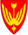 The coat-of-arms is from modern times. They were granted on 7 August 1987. The arms show a gold-colored winged arrow pointing down on a red background. The arms are based on the legend that in 1022, King Olaf II of Norway (Saint Olaf) shot an arrow and where the arrow hit the ground, he built the church.[5][6]