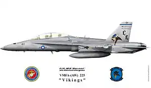 VMFA(AW)-225 was the first Marine Corps fighter squadron deployed to the Middle East in support of Operation Iraqi Freedom. The squadron was deployed in January 2003 from its home base at MCAS Miramar in San Diego, CA to Ahmed Al Jabar Air Base in Kuwait. From Kuwait, the "Vikings" took part in Operation Southern Watch, assisting the US Air Force in patrolling the Southern No-Fly-Zone set up by the United Nations in Iraq. In March 2003, VMFA(AW)-225 began flying combat sorties in support of Operation Iraqi Freedom. Joining 225 were other members of Marine Aircraft Group 11.VMFA (AW)-225 also deployed in support of OIF in 2007-2008 at Al-Asad Air Base in Iraq.