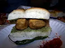 - Batata vada (potato vada). Often served in the form of vada pav, with a bun (known as a pav) and chutney; a common street food in Maharashtra, especially in Mumbai.