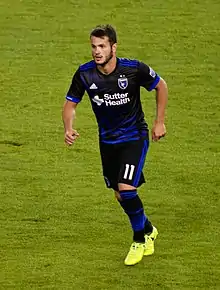 ![]() Kazaishvili playing for San Jose in 2017. | |||