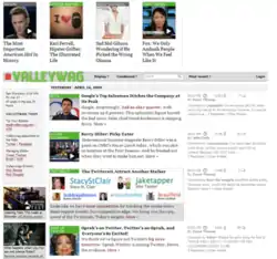 Valleywag was a Gawker Media blog with gossip and news about Silicon Valley personalities. It was initially launched under the direction of editor Nick Douglas in February 2006. After Douglas was fired,[1] the blog was taken over by Owen Thomas. Thomas himself left in May 2009, to be replaced by Ryan Tate.[2] It was the first to break some stories, such as the leaking of a Gene Simmons sex tape.[3] However, it has been criticized for broadcasting unsubstantiated and damaging gossip about people who are not in the public eye,[4] such as a college intern who falsely called in sick to work and had it publicized across the Internet by Valleywag.[5] The blog ceased operating in February 2011, and the URL began directing to a Gawker page with a selection of technology industry-themed stories.
