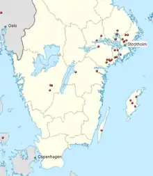 There are a number of raised stone memorials called runestones throughout Scandinavia of which almost all are found in Sweden. Many date to the Viking Age, and there are many associated with the Varangian Guards. These Varangian runestones commemorate various fallen warriors through carved runes, and mention voyages to the East (Austr) or the Eastern route (Austrvegr), or to more specific eastern locations such as Garðaríki (what is today Russia and Ukraine). The losses that the Varangian Guard suffered are reflected by the largest group of runestones that talk of foreign voyages, such as those known as the Greece Runestones.[17] These were raised by former members of the Varangian Guard, or in their memory. A smaller group consists of the four Italy Runestones which commemorate members of the Varangian Guard who died in southern Italy.