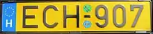 - Since May, 2004 every plate has euroband on the left side, instead of the Hungarian tricolor.[5]