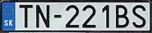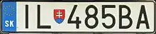 - Between 1 April 1997 and 30 April 2004, the plates contained the Coat of Arms of Slovakia in the top left corner and the country code SK in the bottom left. The two district identifiers were separated from the serials by a dash.