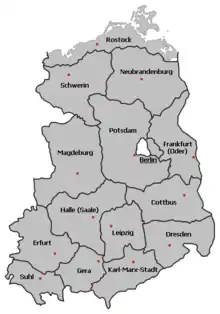 East German vehicle registration plates were issued in the former German Democratic Republic between 1953 and 1990. Vehicles whose cylinder capacity was less than 50 cm3 were exempt from registration.