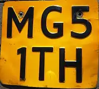 Trader plates, used by automotive companies to register current stock under their insurance, these plates are to be used if the car is used for a test-drive and has no insurance on its own licence plate. It is forbidden to park a car on the public road with trader plates fitted. | ||