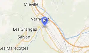 Vernayaz MC railway station (French: Gare de Vernayaz MC) is a railway station in the municipality of Vernayaz, in the Swiss canton of Valais. It is located on the 1,000 mm (3 ft 3 3⁄8 in) gauge Martigny–Châtelard line of Transports de Martigny et Régions. The depot for the line is located just south of the entrance to the station. Another station, Vernayaz on the standard gauge Simplon line of Swiss Federal Railways, is located roughly 1.1 kilometres (0.68 mi) to the north, across the Trient river.[1] There is no local transport connection.[2]