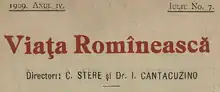 - Previously spelled Viața Romînească, due to changes in the Romanian spelling system.