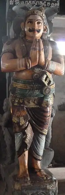 Vijayaraghunatha Sethupathi became a king after his adoptive father Raghunatha Kilavan chose him as heir apparent on his death bed. Vijayaraghunatha was a ruler of considerable ability. The kingdom was on the brink of a famine when he ascended the throne but he handled the situation appreciably well. He set up his base in the fortress of Aranthangi. With the assistance of French engineers he built a fort at Gundar in Kamudhi in present day Ramanathapuram district.[1] Being a pious Hindu, Vijayaraghunatha frequently visited the temple at Rameswaram and made donations.
