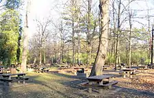The park has quiet wooded walking paths, rolling meadows, scenic vistas, open grassy areas for playing sports, and picnic tables. Available amenities include washrooms, pathways, water fountains, bandstand, two softball diamonds, electrical hook-ups, and barbecue pits.[1]