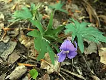 Viola subsinuata is a perennial that produces purple flowers in the spring. It is superficially similar to Viola palmata, and it can be distinguished by its earliest flowering leaves being divided and similar to later leaves (unlike V. palmata, which has undivided early leaves and divided later leaves).[3]