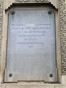 After World War I, a first intervention was removing the word "Hungarians" from the inscription behind the monument. Lately there has been talk of redoing the original inscription.[3]