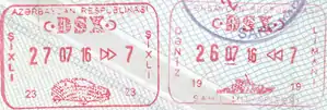 Citizens of the following countries can obtain a visa for Azerbaijan on arrival valid for 30 days obtainable at any international airport.[16][17][18][19]