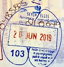All foreign nationals visiting Seychelles are granted visa free access. They must be in a possession of a valid passport, return or onward ticket, proof of accommodation and sufficient funds. The Visitor’s Permit is issued free of charge and is initially valid for up to three months but it can be extended for a fee for a period of up to three months with further extensions not exceeding total period of twelve months.[1][2][3][4]