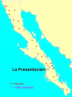 The Visita de la Presentación was a Spanish mission in Baja California. It was established by the Franciscans during their brief presence in the region, as a subordinate mission station for Misión San Francisco Javier de Viggé-Biaundó, about 16 kilometres (9.9 mi) south of that mission.