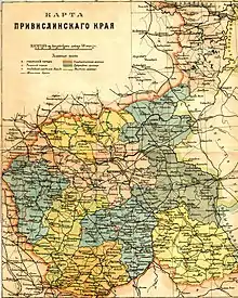 ![]() Russian map of Привислинский край (Vistula Land) from 1896 | |||||||||