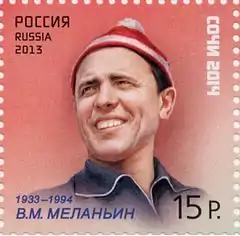 ![]() Vladimir Melanin on a 2013 Russian stamp from the series "Sports Legends". | ||||||||||||||||||||||||||||||||||||||